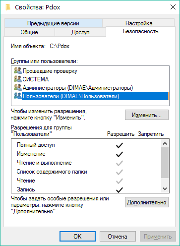 - Назначим полные права на эту папку для всех групп пользователей, куда входят пользователи, пользующиеся Zulu на данной машине.