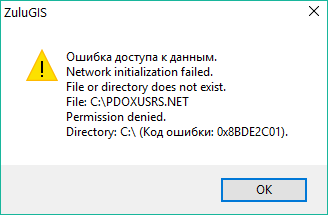 В процессе своей работы BDE пользуется своим служебным файлом, который по-умолчанию имеет путь C:\PDOXUSRS.NET. в случае, если создание этого файла в корне диска C:\ невозможно, BDE не может работать и возникает ошибка доступа к данным.