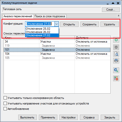 В версии ZuluGIS 8.0.0.6997 появилась возможность сохранять список переключений, которые настраивается в Коммутационных задачах.