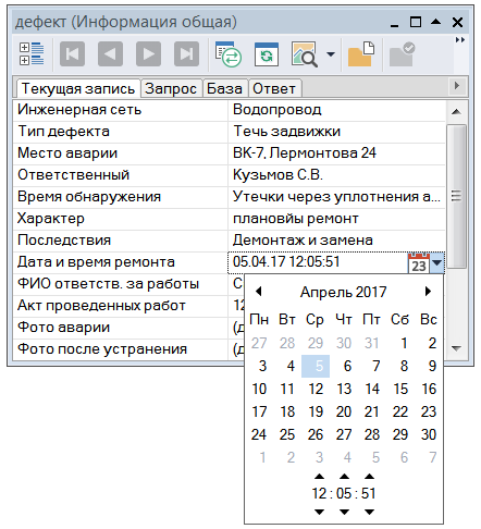 В окне семантической информации к полям с типом данных Дата и Дата/Время подключен календарь, который позволяет выбирать значение, а не вводить его вручную.