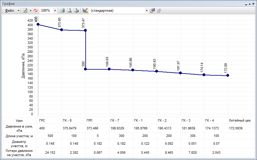 Построение графика падения давления газовой сети