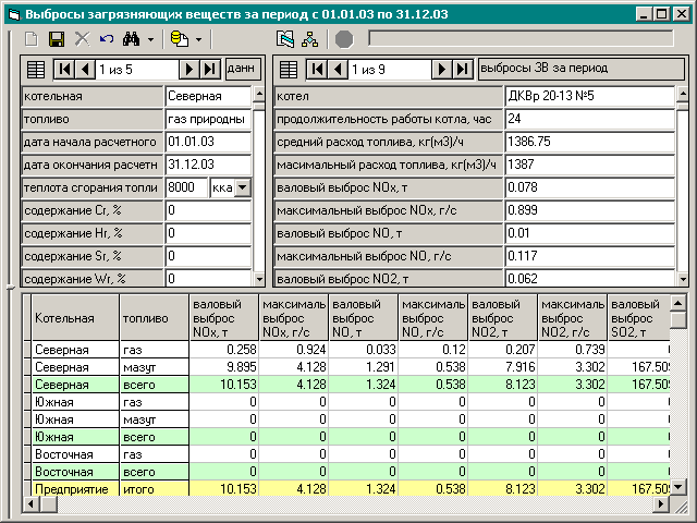 По результатам расчета определяются выбросы всех загрязняющих веществ раздельно для каждого котла на каждом виде топлива. Результаты расчета выбросов группируются по котельным и по предприятию в целом.