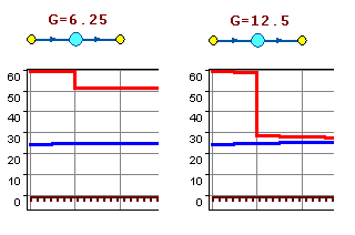 На рисунке показано, что при увеличение в два раза расхода через регулятор, установленный в обратном трубопроводе, давление в регулируемом узле остается постоянным. Величина сопротивления регулятора может изменяться в пределах от бесконечности до сопротивления полностью открытого регулятора. Если условия работы сети заставляют регулятор полностью открыться, то он начинает работать как нерегулируемый дросселирующий узел.