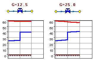 Насос можно моделировать двумя способами: либо как идеальное устройство которое изменяет давление в трубопроводе на заданную величину, либо как устройство, работающее с учетом реальной напорно-расходной характеристики конкретного насоса. В первом случае просто задается значение напора насоса на подающем и/или обратном трубопроводе. Если значение напора на одном из трубопроводов равно нулю, то насос на этом трубопроводе отсутствует. Если значение напора отрицательно, то это означает, что насос работает навстречу входящему в него участку.