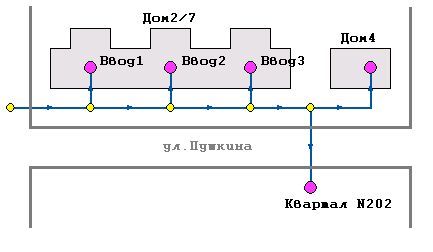 Из рисунка видно, что цепочка участков во внутреннем представлении дважды разорвана по подающему и по обратному трубопроводам.