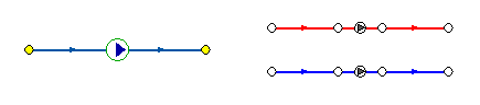 Хотя насосная станция в однолинейном изображении представляется одним узлом, в зависимости от табличных параметров этого узла насос может быть установлен на подающем или обратном трубопроводе, либо на обоих трубопроводах одновременно. Для задания направления действия насоса в этот узел только один участок обязательно должен входить и только один участок должен выходить.