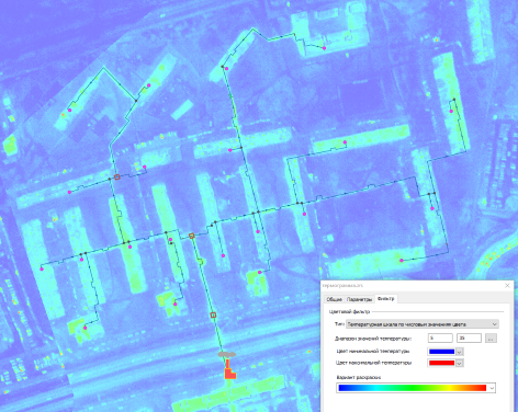 Анализ термограмм предназначен для оценки уровня тепловых потерь на участках тепловой сети с помощью анализа наложения схемы сети на тепловизионную съемку. Термограмма - растровое изображение, полученное в результате тепловизионной съемки.