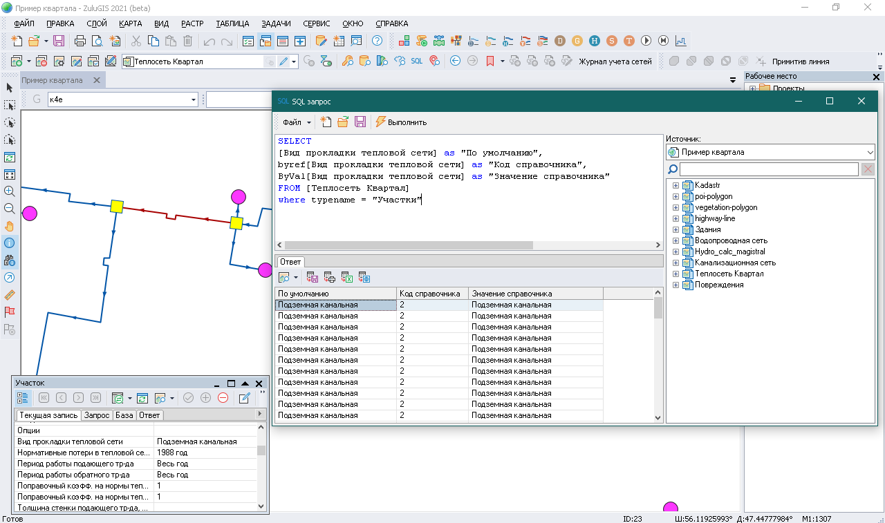 WHERE typename = "Участки" and BYREF [Вид прокладки тепловой сети] = 2