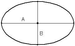 Эллипс характеризуется координатами центра, а также коэффициентами сжатия A, B.