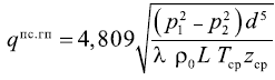 Пропускная способность газопровода qпс.гп, м3/ч, определяется при заданных значениях давления газа в начальной точке р1, МПа, и в конечной точке р2, МПа, газопровода из соотношений: