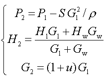 Здесь Hw - энтальпия подмешиваемой воды, ее легко вычислить из уравнения состояния среды по известным температуре Tw и давлению Pw=P2.