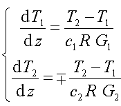 В качестве математической модели естественно взять систему дифференциальных уравнений, описывающих изменение температуры теплоносителей по мере их продвижения внутри теплообменника