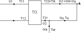 Температура на входе второго контура ТО будет равна температуре смеси циркуляционной воды и подпитки холодной воды.