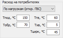 При расчете по тепловым нагрузкам необходимо ввести расчетные температуры воды в соответствующих полях.