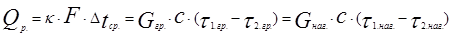τ1.гр, τ2.гр, τ1.нагр, τ2.нагр- температуры греющего и нагреваемого теплоносителя соответственно на входе и выходе из ТО, ºС;